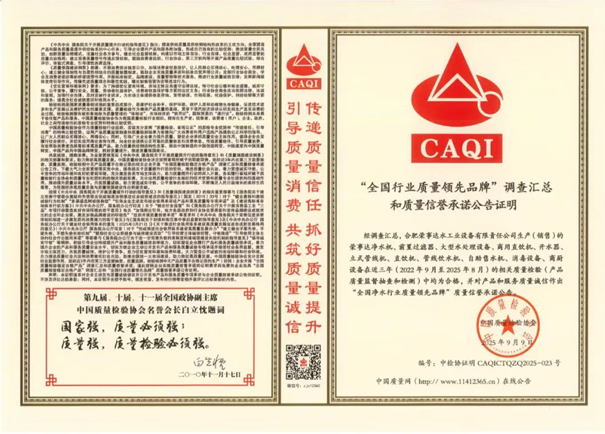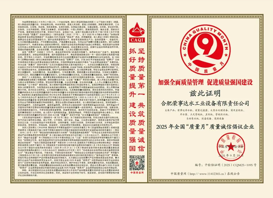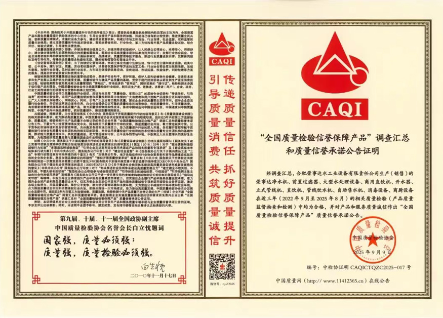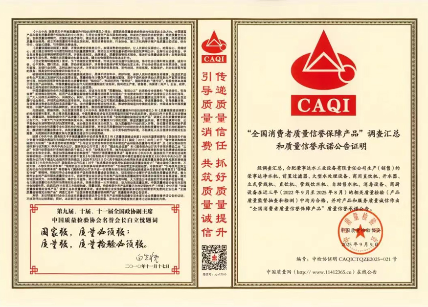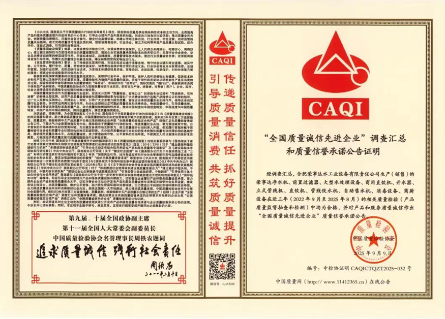 未來,榮事達水工業將繼續秉持“質量為先、誠信為本”的理念,在凈水技術創新與產品品質升級上持續發力,打造全場景、多領域的飲水解決方案,為推動我國凈水行業高質量發展與“質量強國”建設貢獻更多力量。