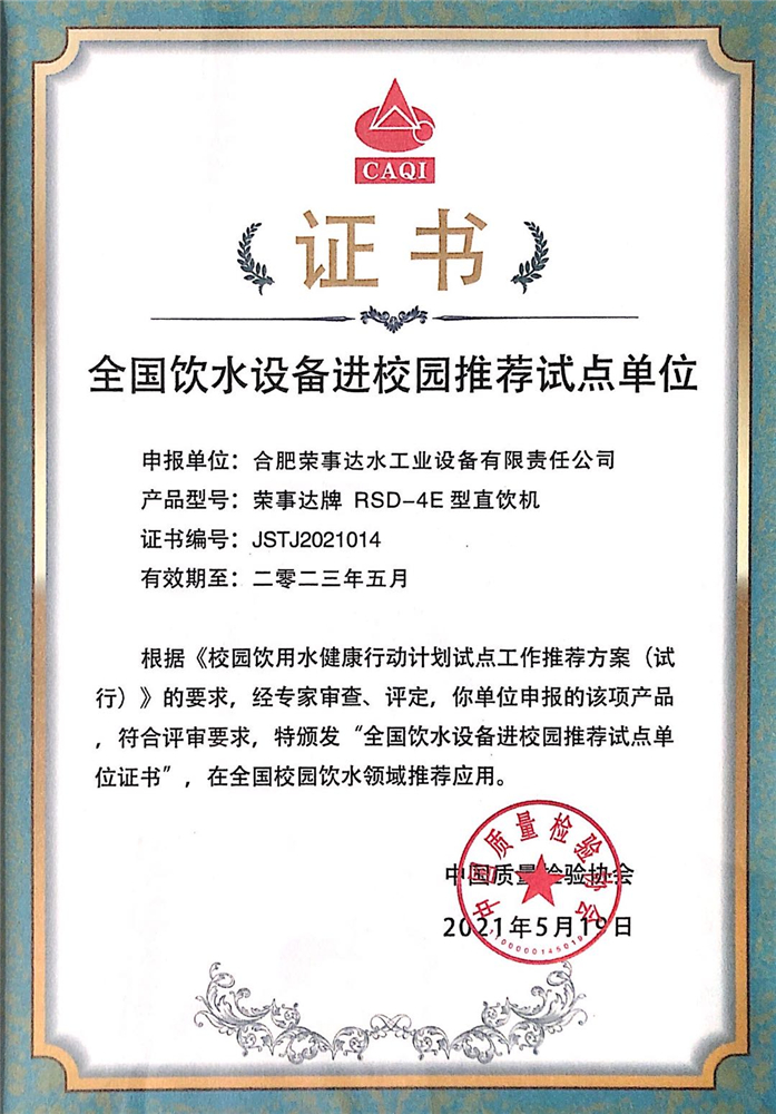 全國飲水設備進校園推薦試點...