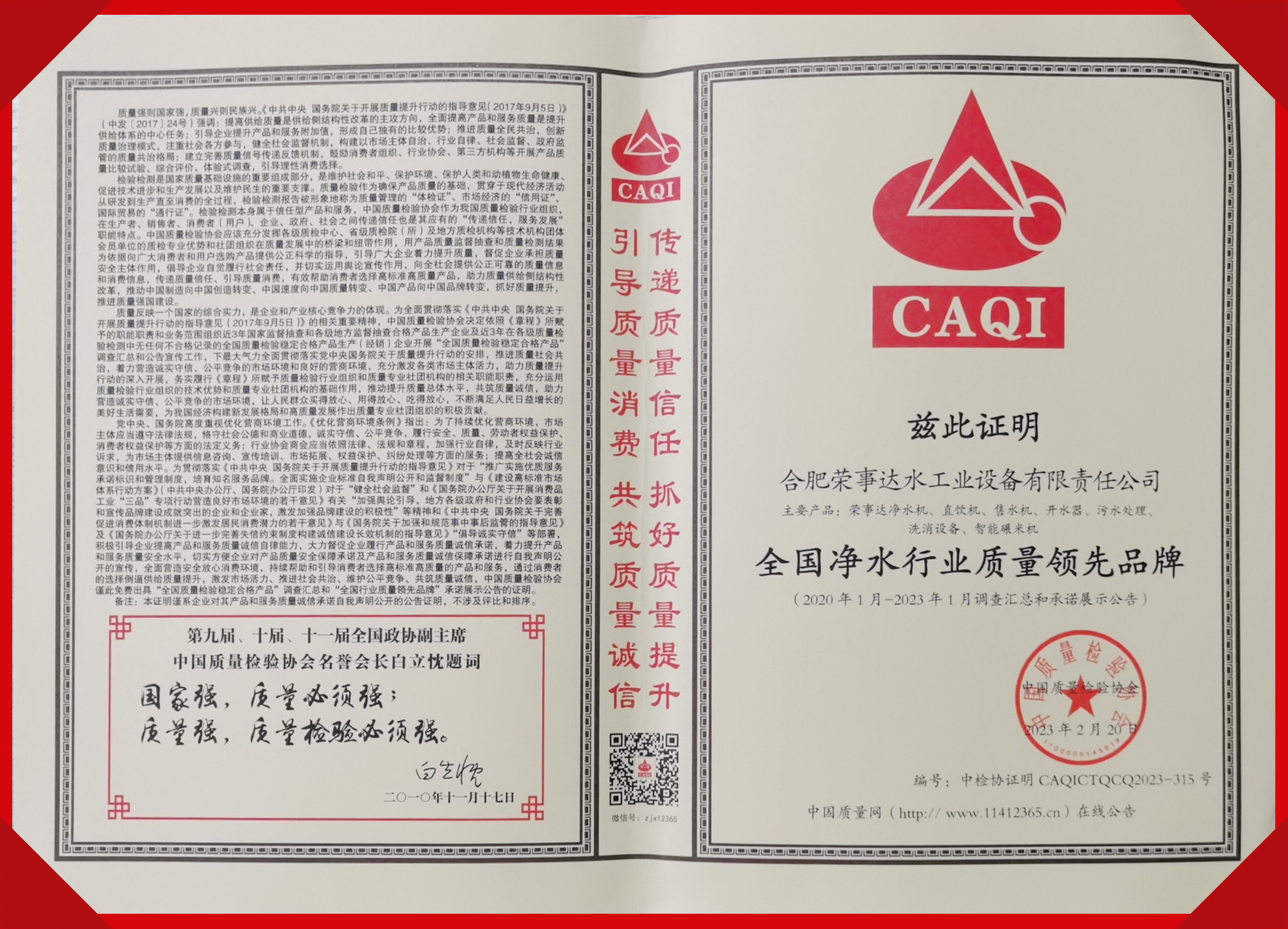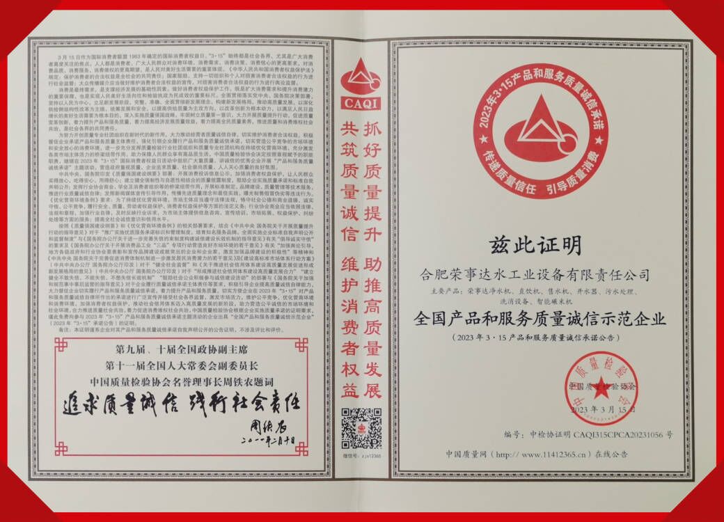 全國凈水行業質量領先品牌