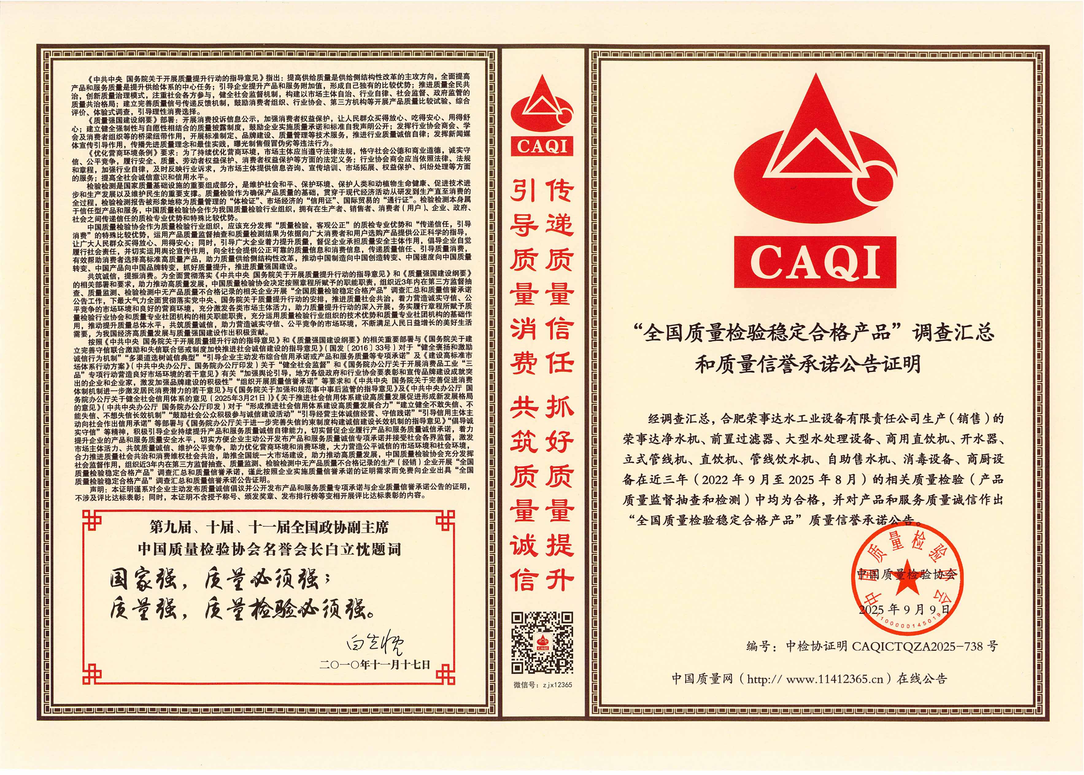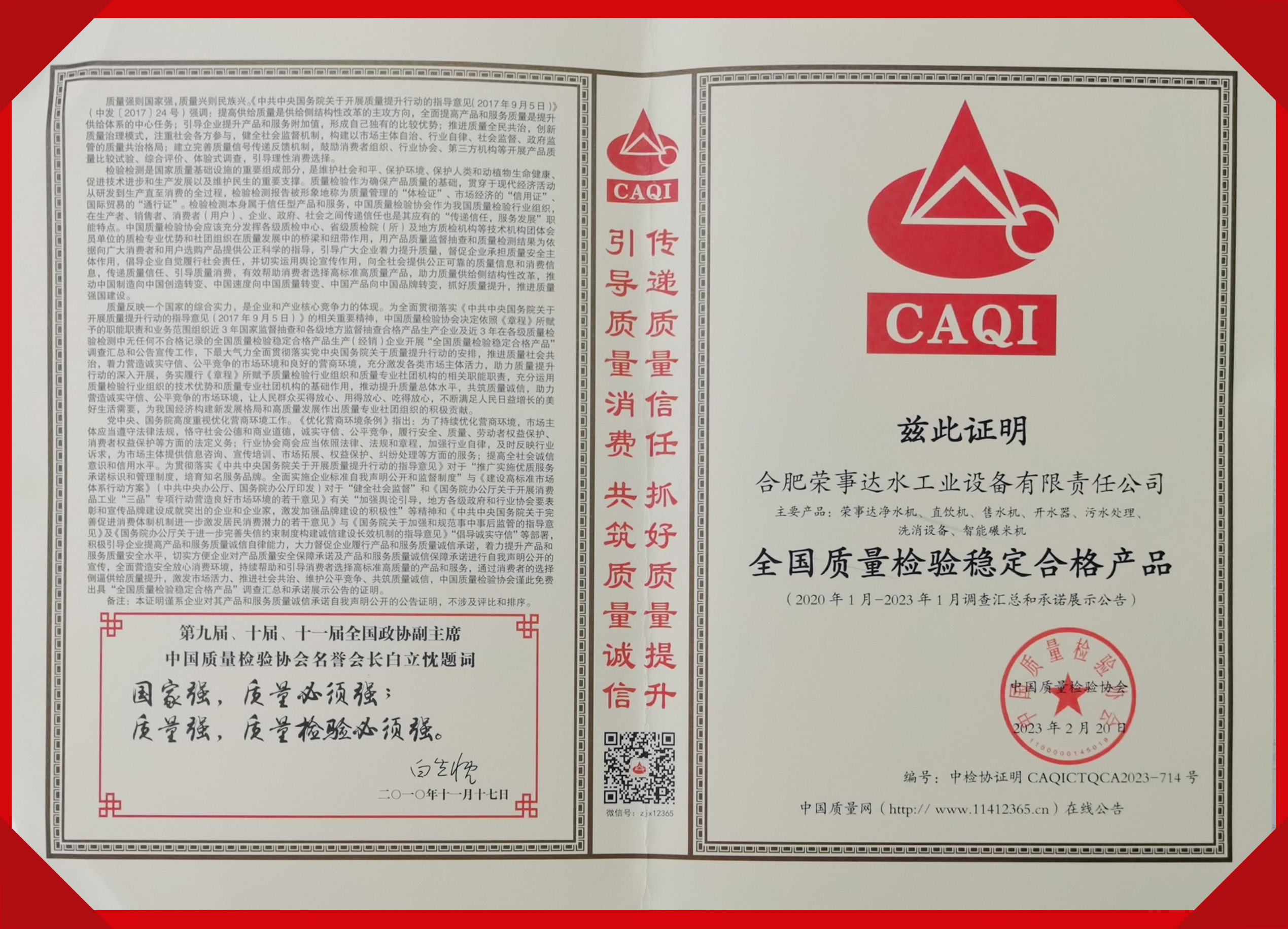 全國質量檢驗穩定合格產品