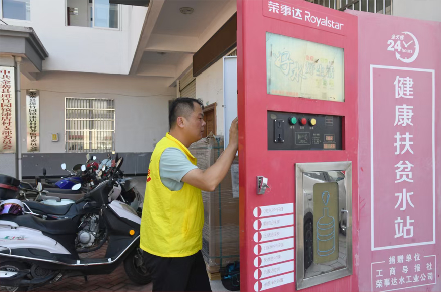 活動中,榮事達(dá)水工業(yè)黨支部發(fā)揮自身技術(shù)優(yōu)勢,組織專業(yè)維修團(tuán)隊(duì)對此前捐贈給該村的凈水設(shè)備進(jìn)行了全面檢修保養(yǎng),并免費(fèi)更換了濾芯。這些凈水設(shè)備是榮事達(dá)水工業(yè)公司特別定制的產(chǎn)品,具備24小時(shí)自助供水功能,采用多級過濾凈化技術(shù),能有效濾除水中的雜質(zhì)、細(xì)菌、農(nóng)藥、化肥及重金屬等有害物質(zhì),確保出水達(dá)到直飲標(biāo)準(zhǔn)。