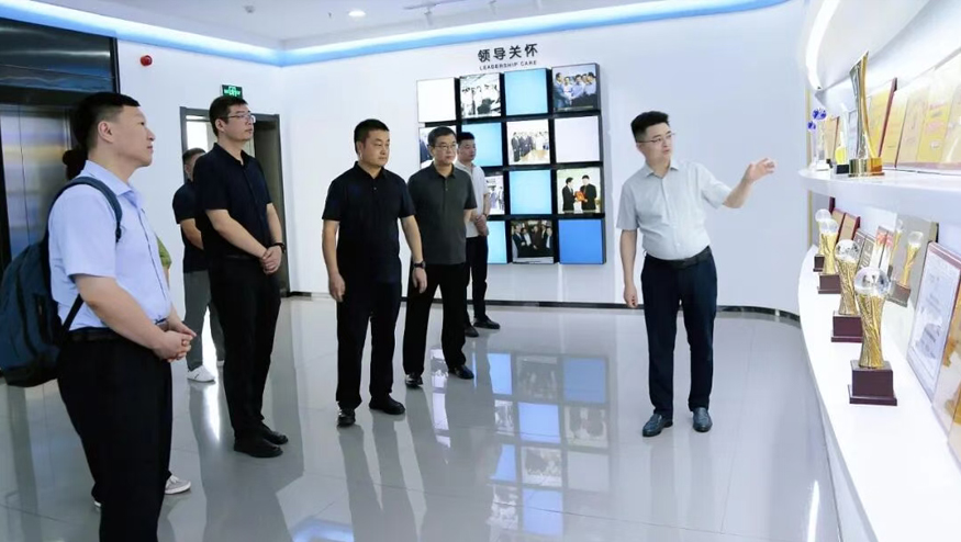在智慧水世界展廳,總經(jīng)理王悅生向領(lǐng)導(dǎo)一行詳細(xì)介紹集團(tuán)的發(fā)展歷程、公益貢獻(xiàn)及黨建引領(lǐng)下的企業(yè)文化等。