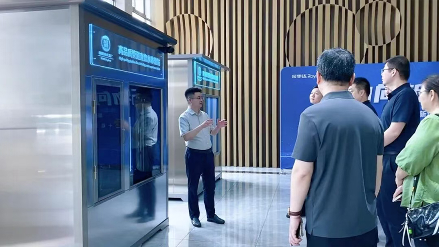總經(jīng)理王悅生向領(lǐng)導(dǎo)一行介紹管道直飲水項(xiàng)目:該項(xiàng)目針對(duì)社區(qū)、學(xué)校、醫(yī)院、企事業(yè)單位及工廠等場(chǎng)景,提供定制化飲水模式,涵蓋社區(qū)智慧水站、校園智慧凈水屋、管道直飲水入戶(hù)/入棟解決方案,旨在為民眾打造便捷、高端、健康的飲水服務(wù)。