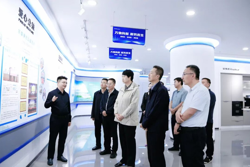 在智慧水世界展廳,領導一行了解公司的發展歷程,公益事業及黨建引領下的企業文化等。