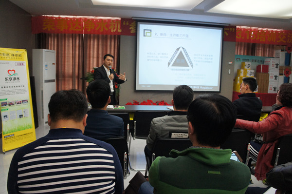 培訓會上,廣大客戶零距離見證榮事達凈水機產品質量,在生產線上觀看了產品的每道制造工序,在檢測線上見證了產品質量的檢測結果,在實驗室親歷了測試產品性能的科學實驗。隨后參加了全體人員聆聽了產品講座,渠道開發(fā)部董部長將榮事達凈水機所采用的膜、壓力桶、泵、龍頭等配件與其他廠家的產品進行比較,從產品質量、安裝拆卸便攜性、用戶使用體驗等多個方面突出了榮事達凈水機配件的質量和性能優(yōu)勢。