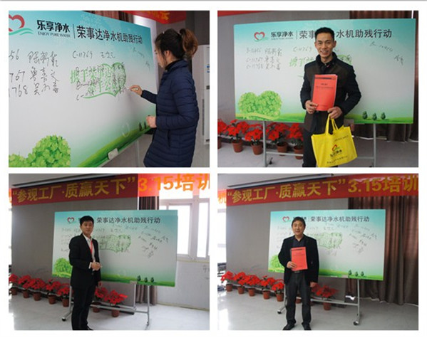 與會的許多意向客戶在一天半的觀摩、學習中,了解了榮事達水工業(yè)公司的過硬的軟、硬實力,見證了榮事達凈水機卓越的產品質量和完善的售后保證,更感受了公司作為凈水名企的品牌信譽、行業(yè)地位、社會擔當。會后,近九成意向客戶立即簽訂了合作協議,與榮事達攜手合作。為了酬謝廣大客戶,榮事達精心準備了四輪抽獎環(huán)節(jié),多款精美禮品悉數送出。其中,20多位合作客戶在終極大獎環(huán)節(jié)幸運抽得公司精心準備的4套凈水設備,用于開展“樂享凈水”助殘行動。