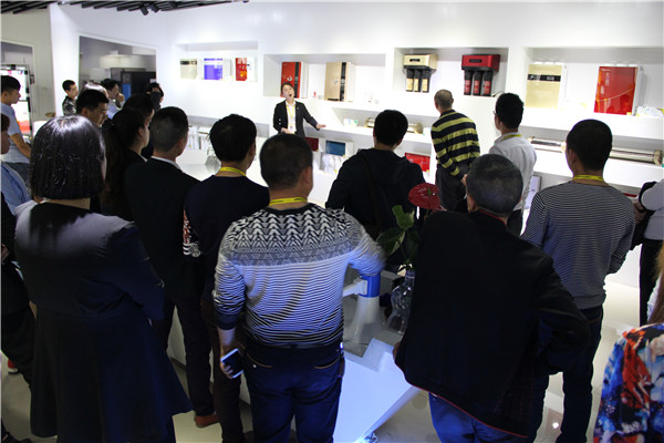 隨后,榮事達渠道開發部董部長對新品功能、市場定位進行了詳盡解析。新款純水機R8采用RO反滲透技術及五級過濾系統,融智能顯示、自動化沖洗、防漏水設計于一體;R8s具備雙膜雙出水、濾芯更換智能提醒等多重功能,用戶使用更節能、實用、省錢。新款飲水機采用厚膜加熱管原理,三秒即熱,并可實現多檔水溫水量調節,家庭飲水更為方便。新品充分結合市場需求,種類齊全,既有可攻克農村地區水壓不足不穩狀況的自吸增壓凈水機,也有能滿足城市居民追求健康時尚生活的高端機型。